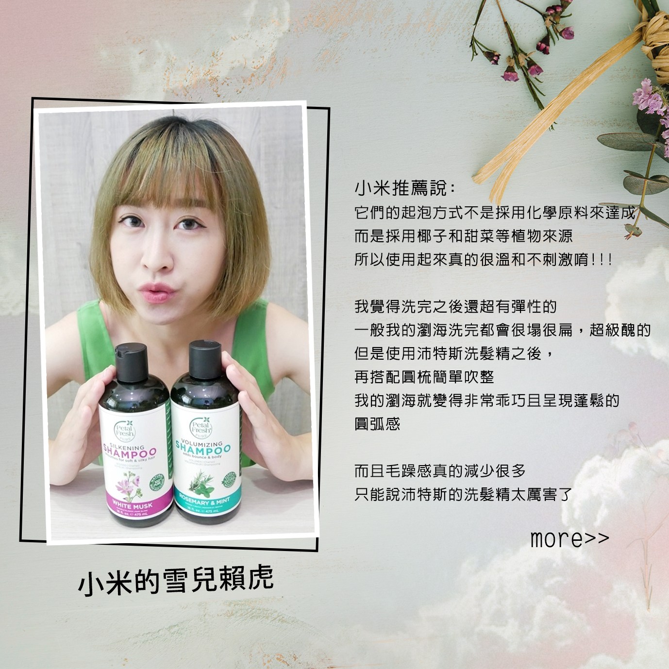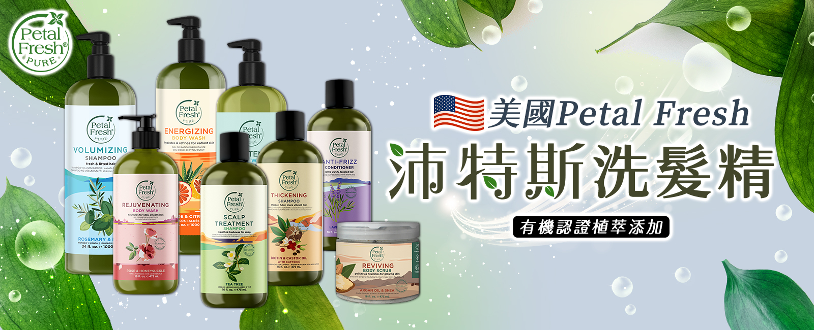 Petal Fresh針對不同的頭皮、髮質問題研發洗髮沐浴系列產品,100%純淨草本配方,有機花草萃取的活性成分,平衡健康頭皮、守護肌膚,遠離有害化學物質的危害。