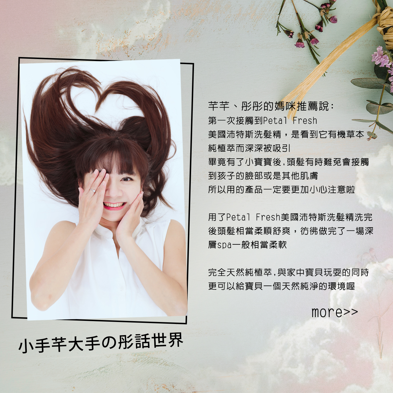 Petal Fresh從2005年引進台灣後,安心無添加的草本配方帶來頭皮清爽舒緩、髮絲健康光澤的絕佳體驗,在各大通路廣受好評,暢銷至今。