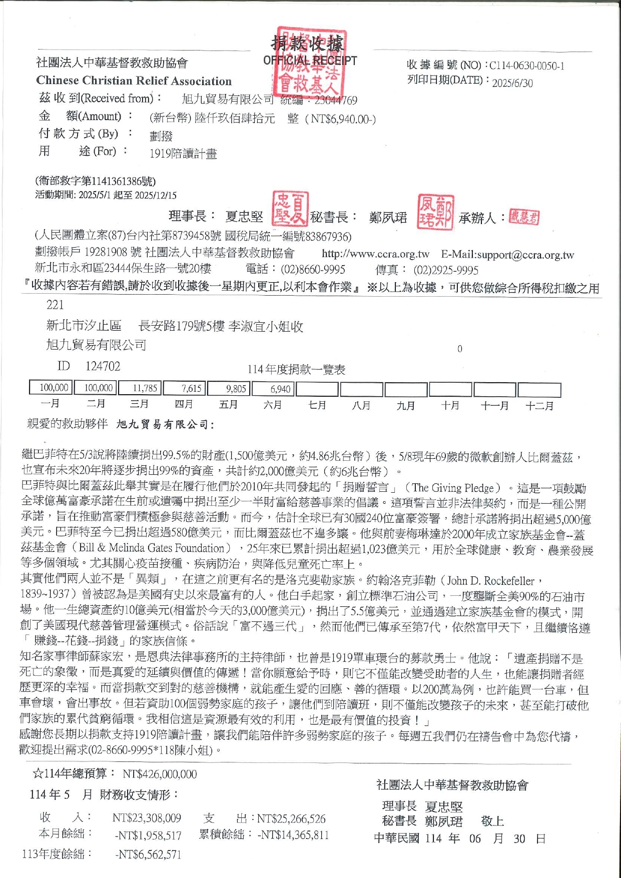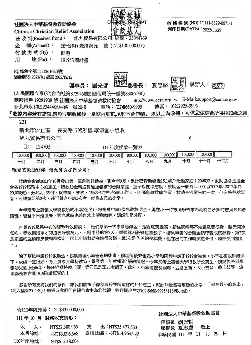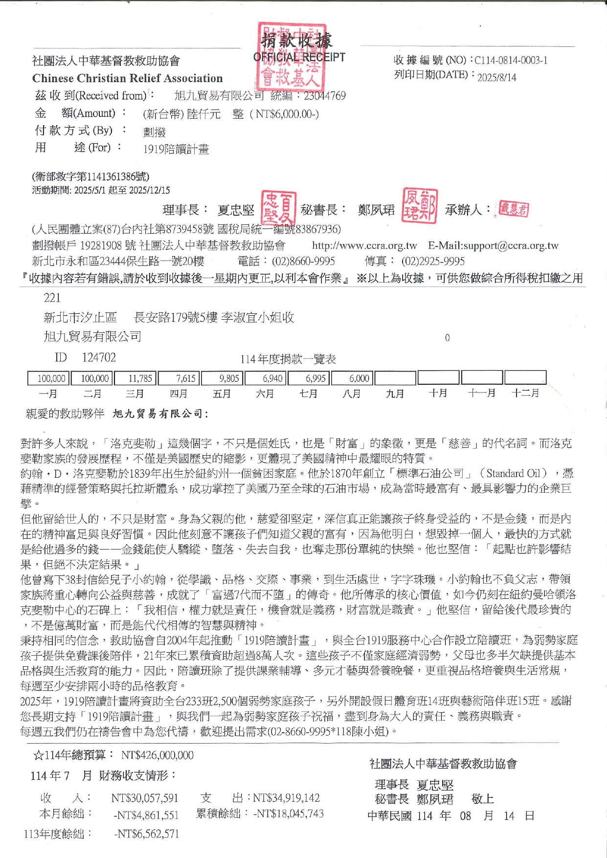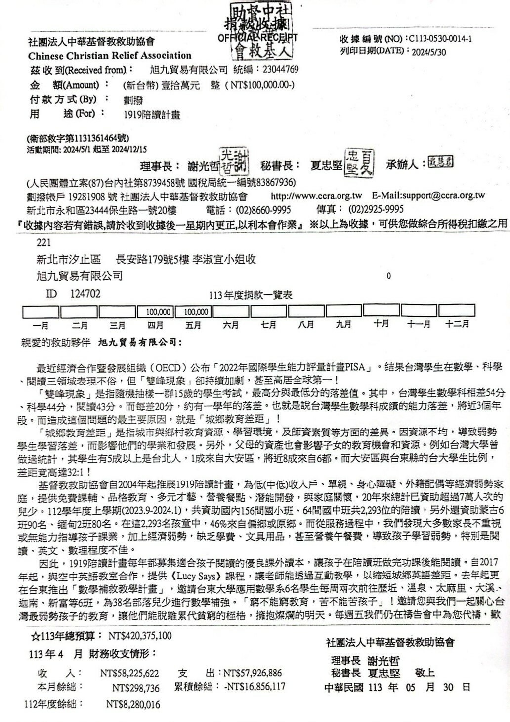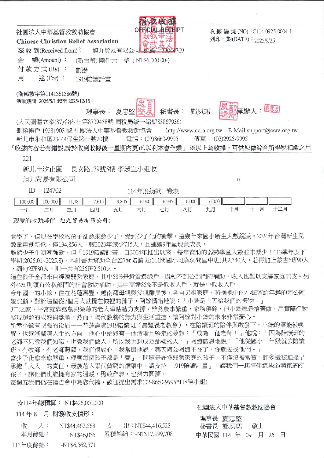 截至2025年04月止 陪讀計畫已累計捐款1482萬1140元