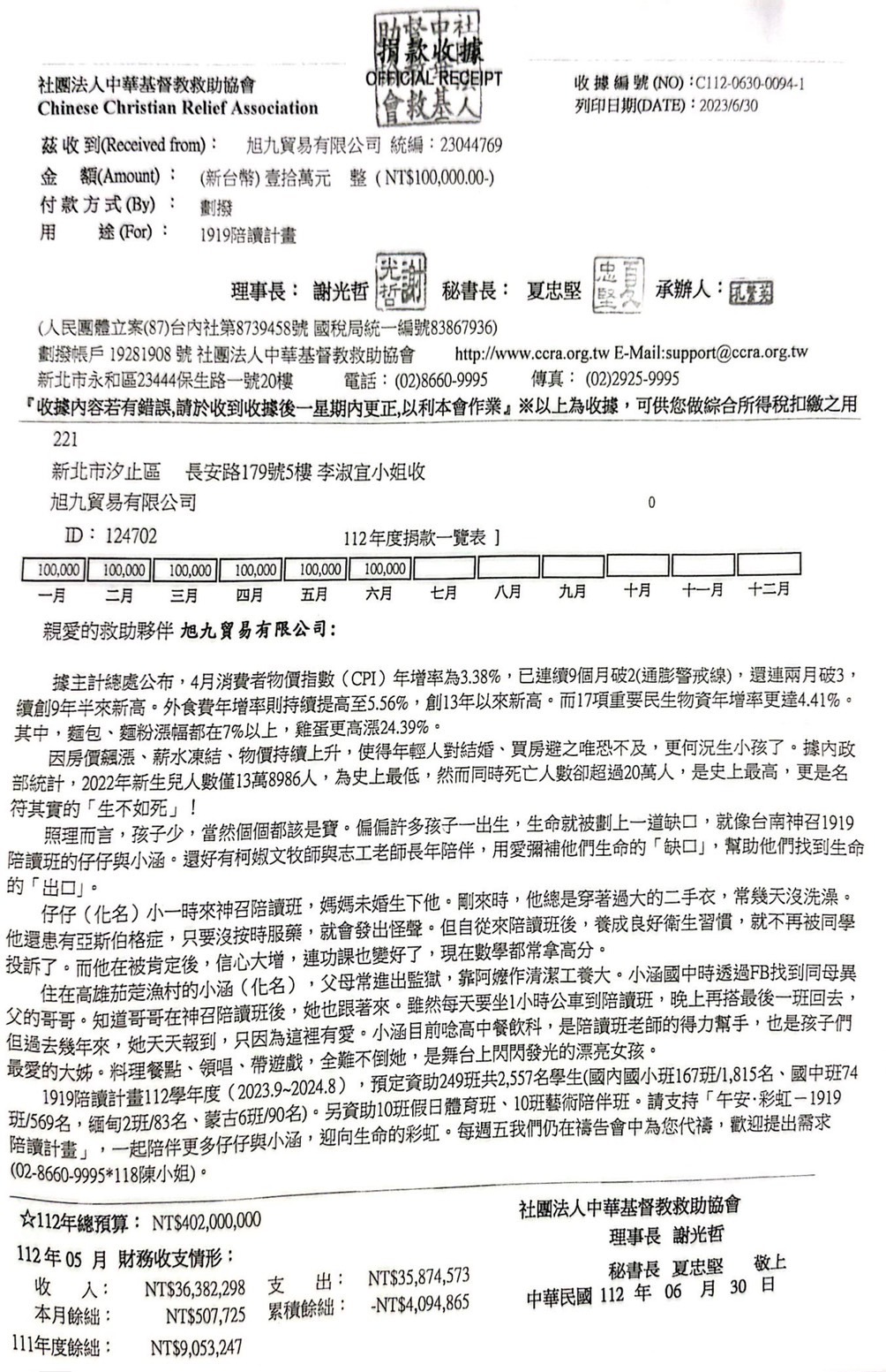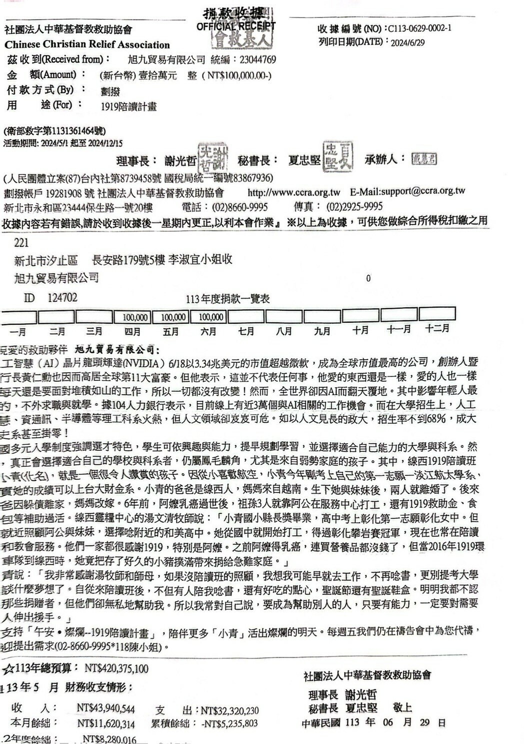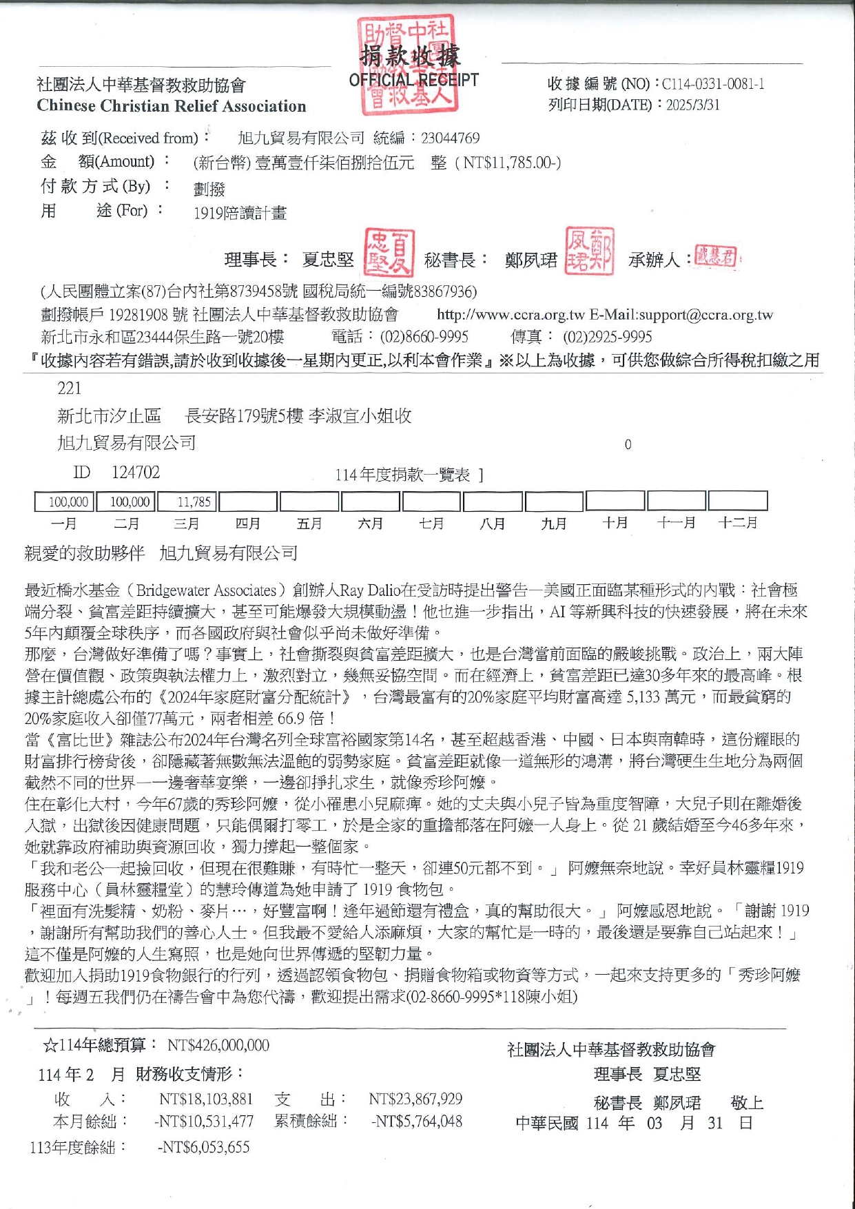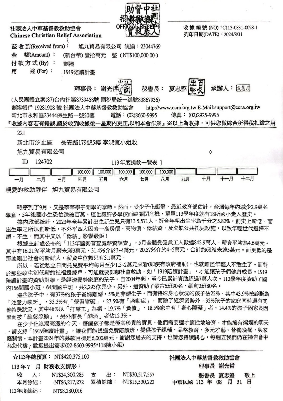 截至2025年04月止 陪讀計畫已累計捐款1482萬1140元