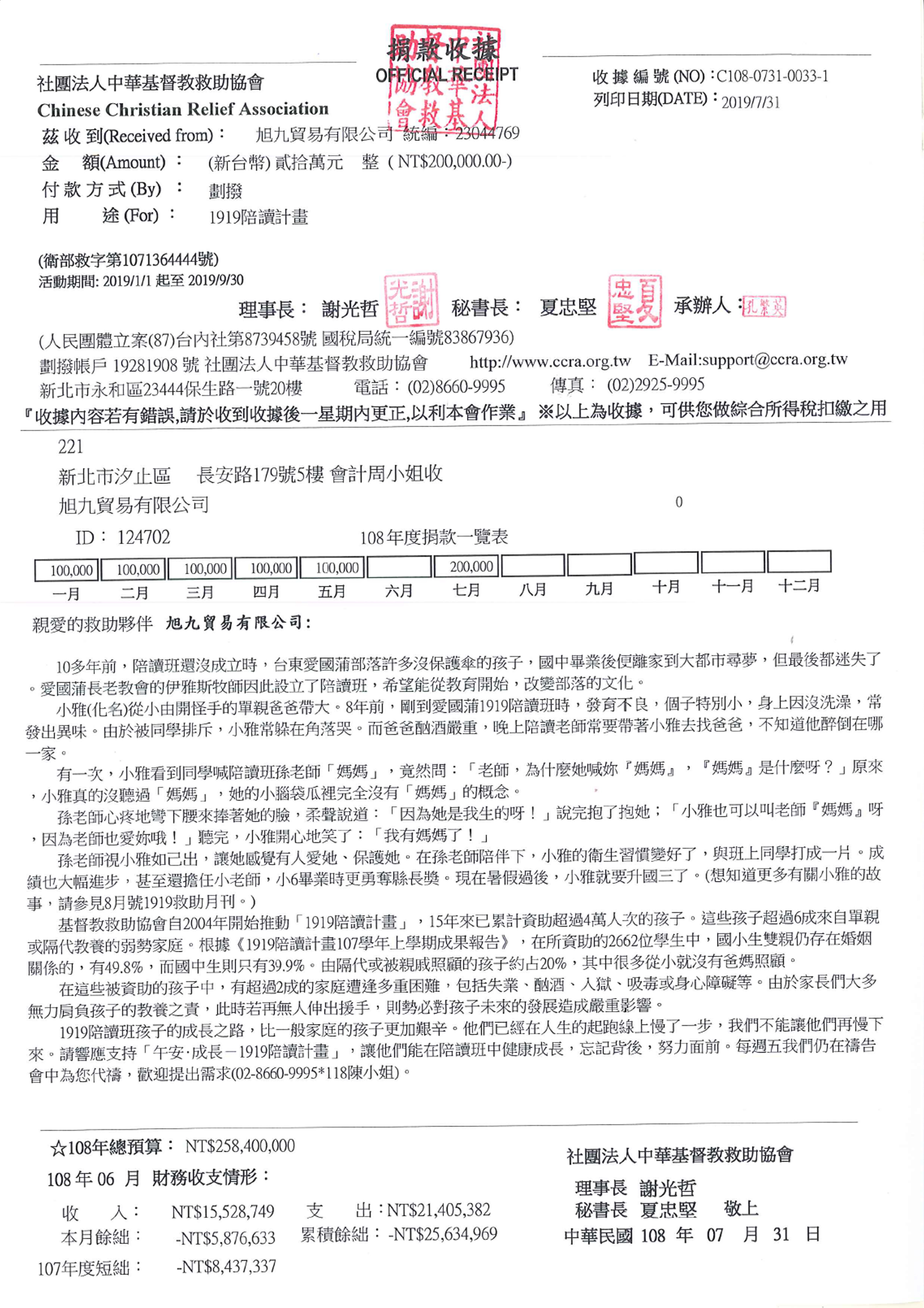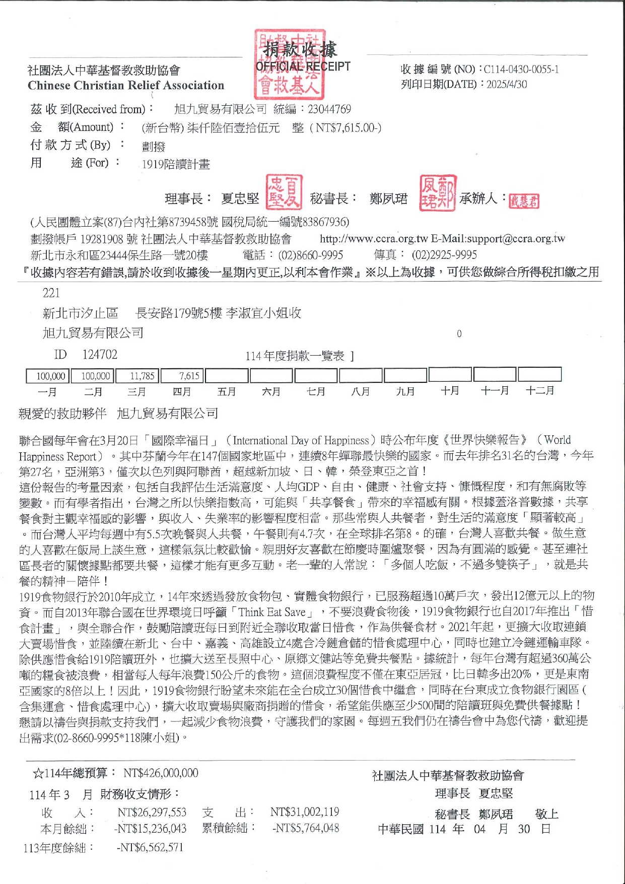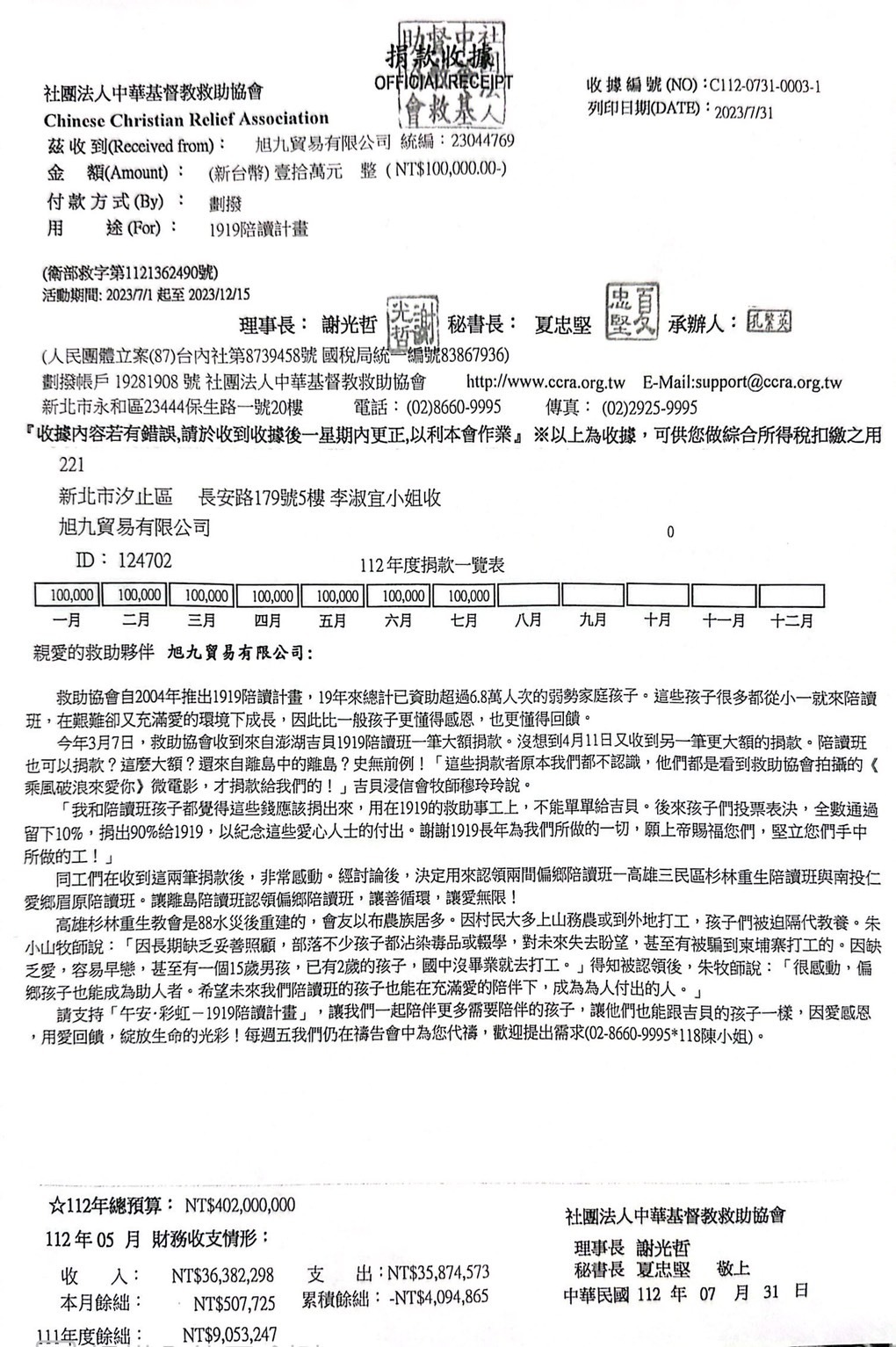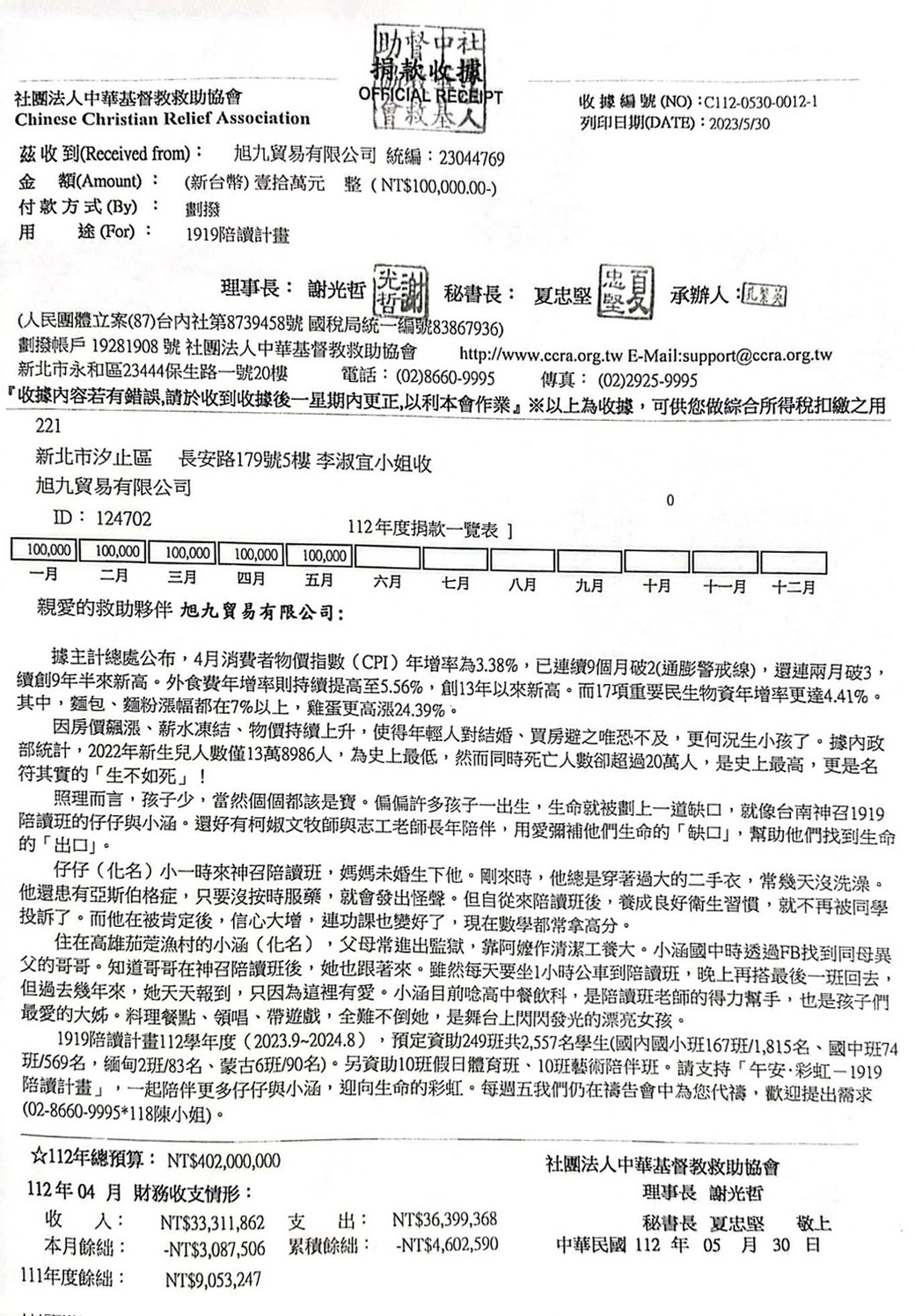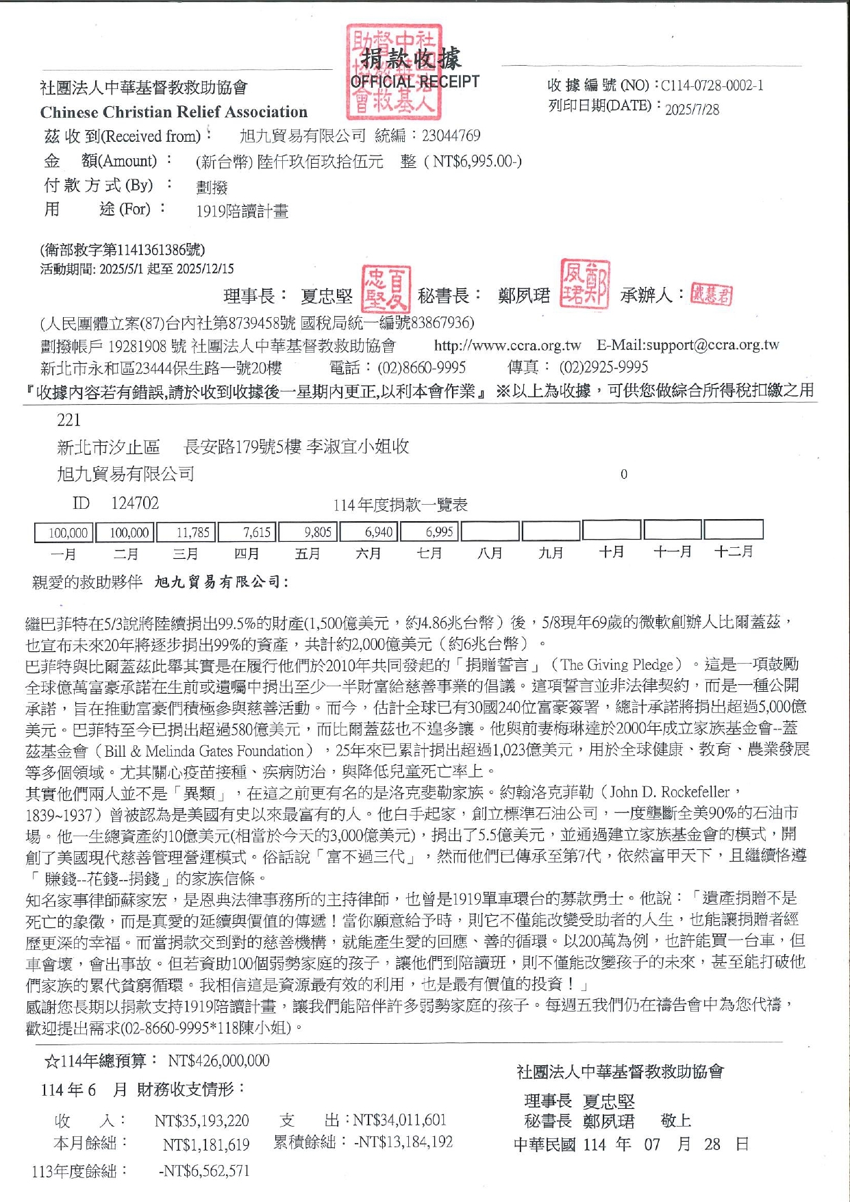 截至2025年04月止 陪讀計畫已累計捐款1482萬1140元