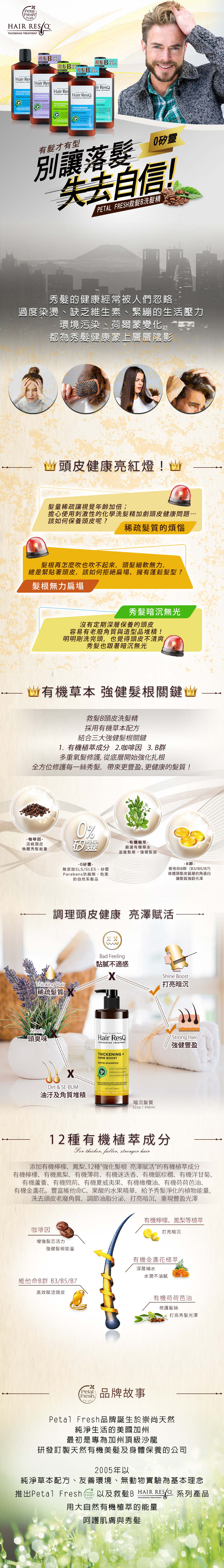 • 美國全能健髮配方,結合3大強健髮根關鍵成分:咖啡因、B群、有機植萃,賦活蘊髮,重現豐盈亮澤