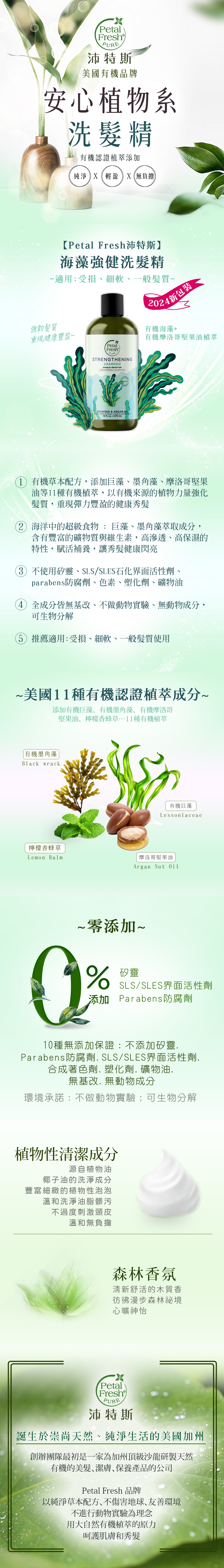 ★有機草本配方,添加有機巨藻、墨角藻、摩洛哥堅果油等11種有機植萃,滋養強化髮質,重現豐盈彈力的健康秀髮