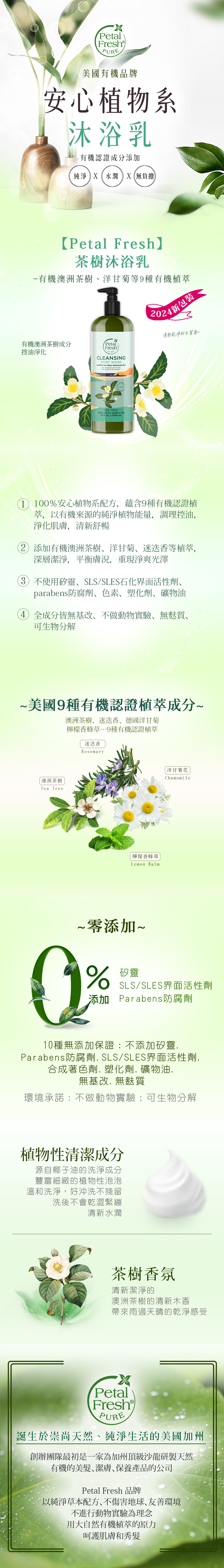 ☆有機草本配方,添加有機澳洲茶樹、洋甘菊、迷迭香等9種有機植萃,深層潔淨肌膚,平衡控油,洗後淨爽舒暢