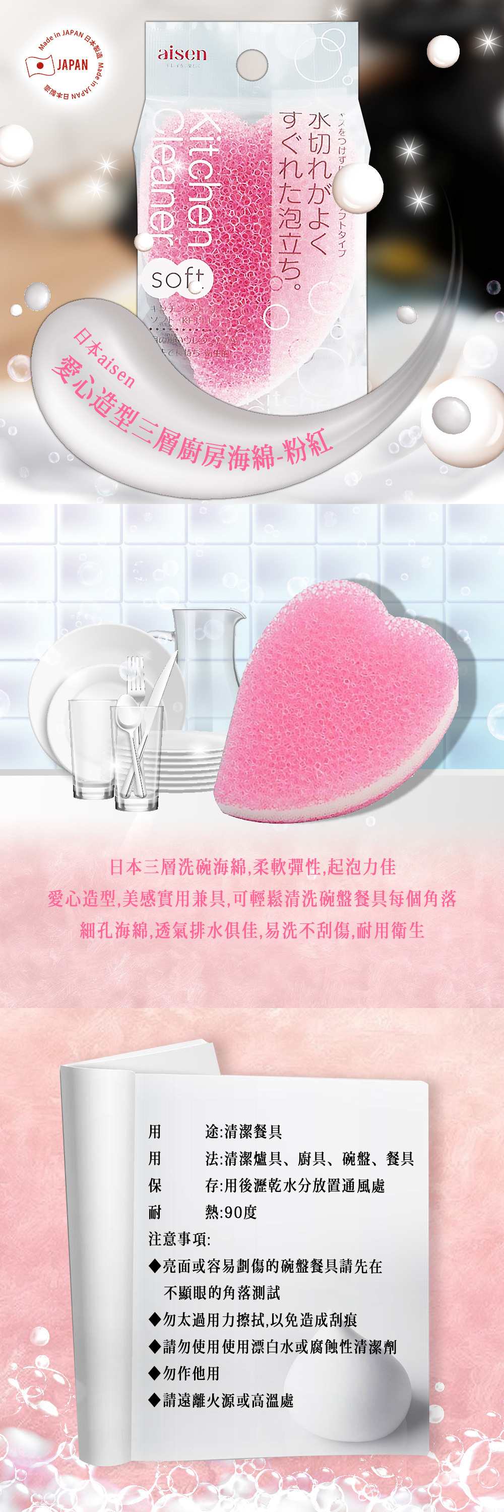 ◆日本三層洗碗海綿,柔軟彈性,起泡力佳