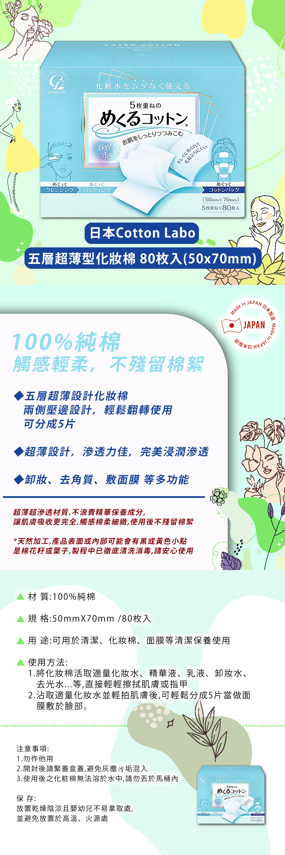 ★五層超薄設計化妝棉,兩側壓邊設計,輕鬆翻轉使用,可分成5片