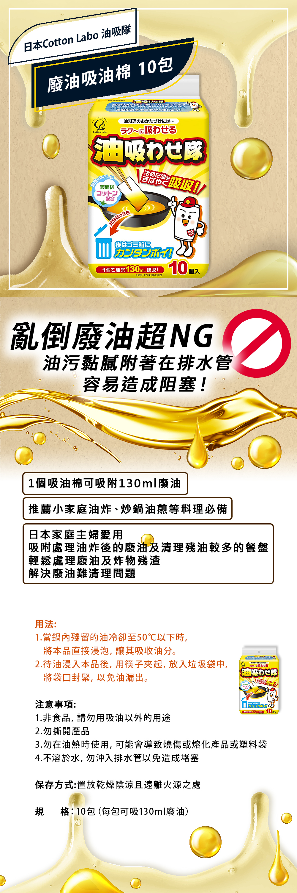 ★日本家庭主婦愛用推薦,1個吸油棉可吸附130ml廢油