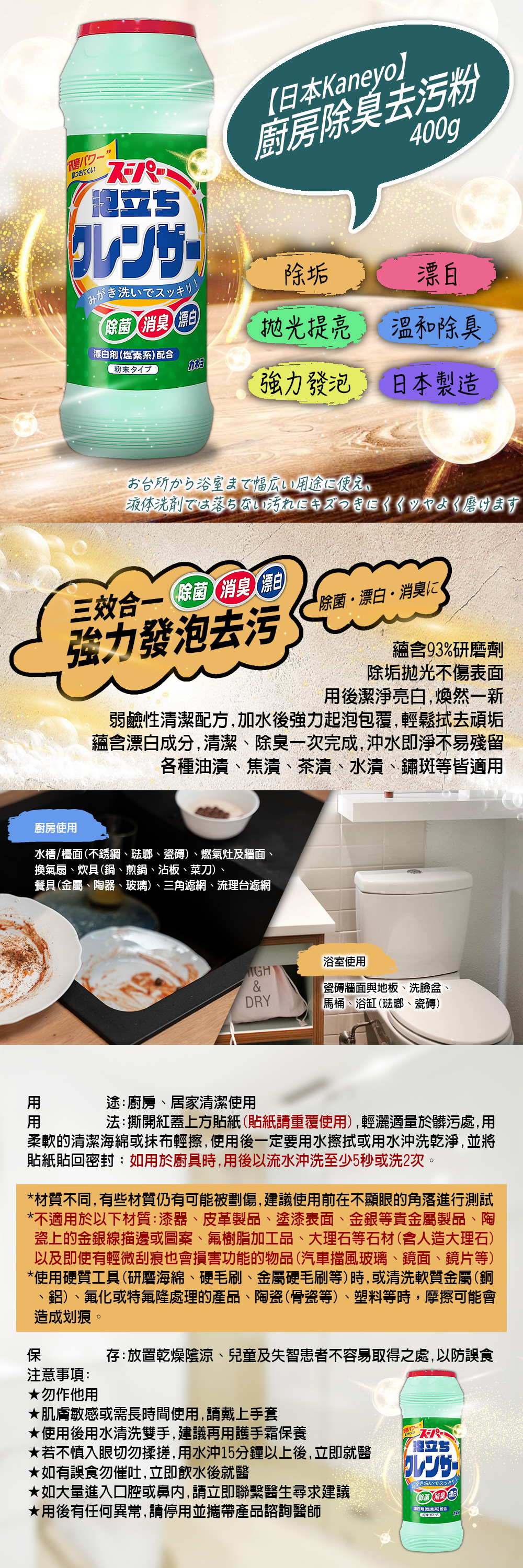 ※強力發泡去污 : 除垢、拋光、漂白、消臭※
