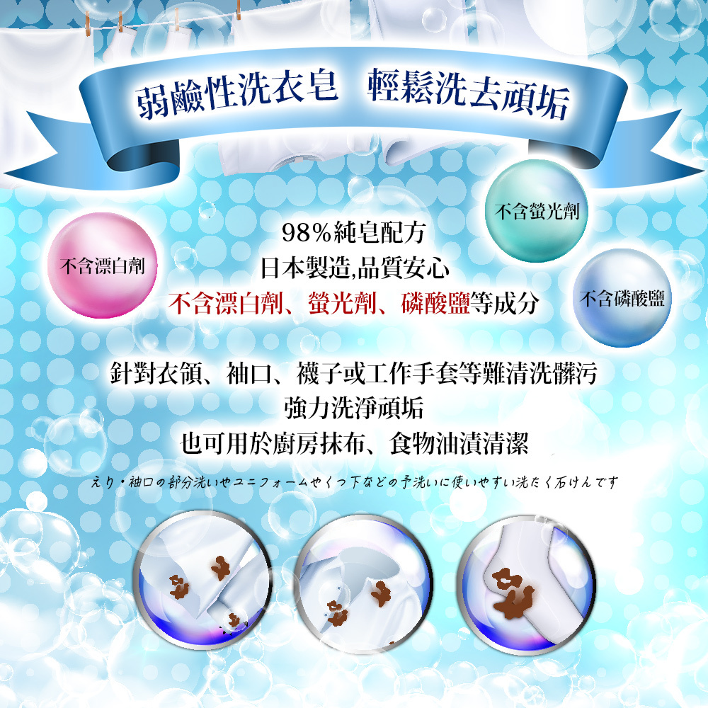 ※弱鹼性洗衣皂,輕鬆洗去頑垢※