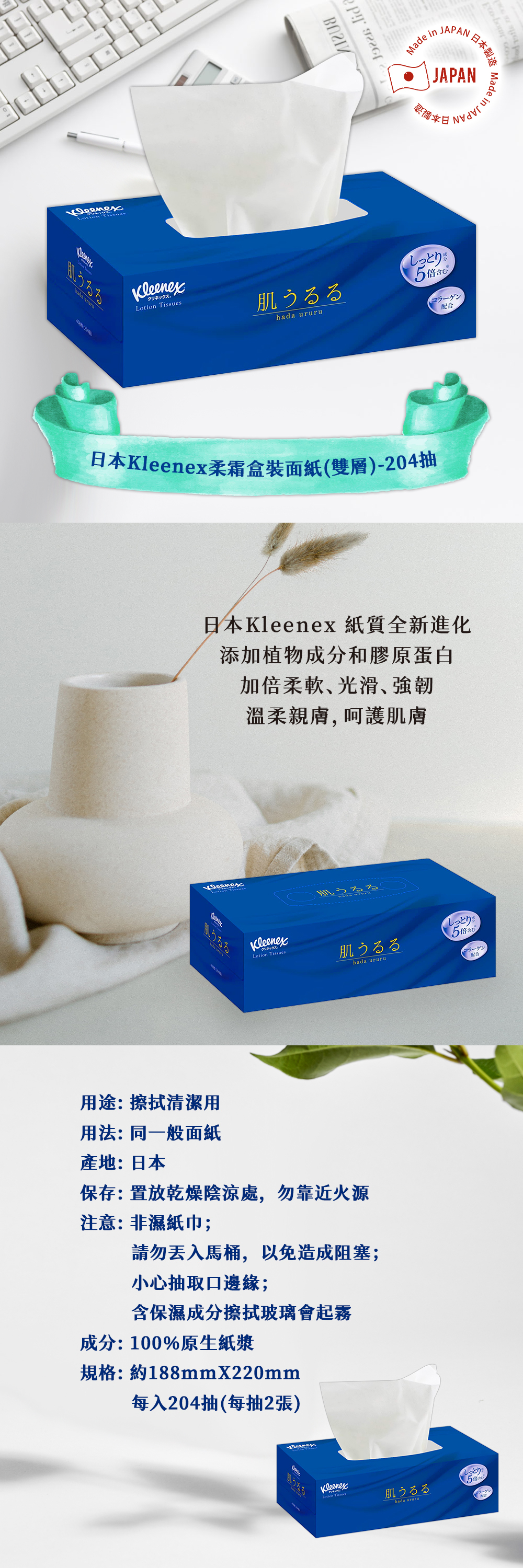 ■ 日本Kleenex 紙質全新進化,添加植物成分和膠原蛋白