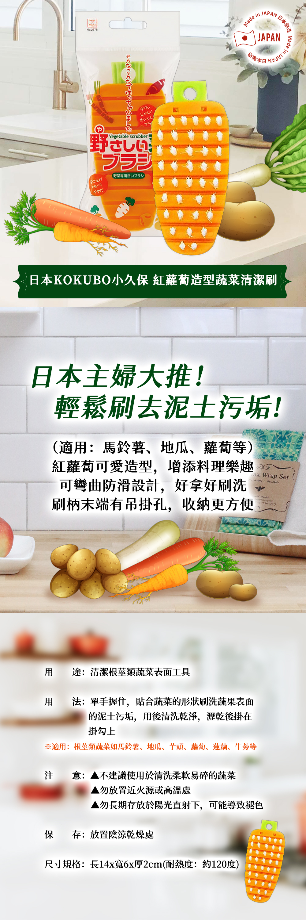 •適用:根莖類蔬菜如馬鈴薯、地瓜、芋頭、蘿蔔、蓮藕、牛蒡等。