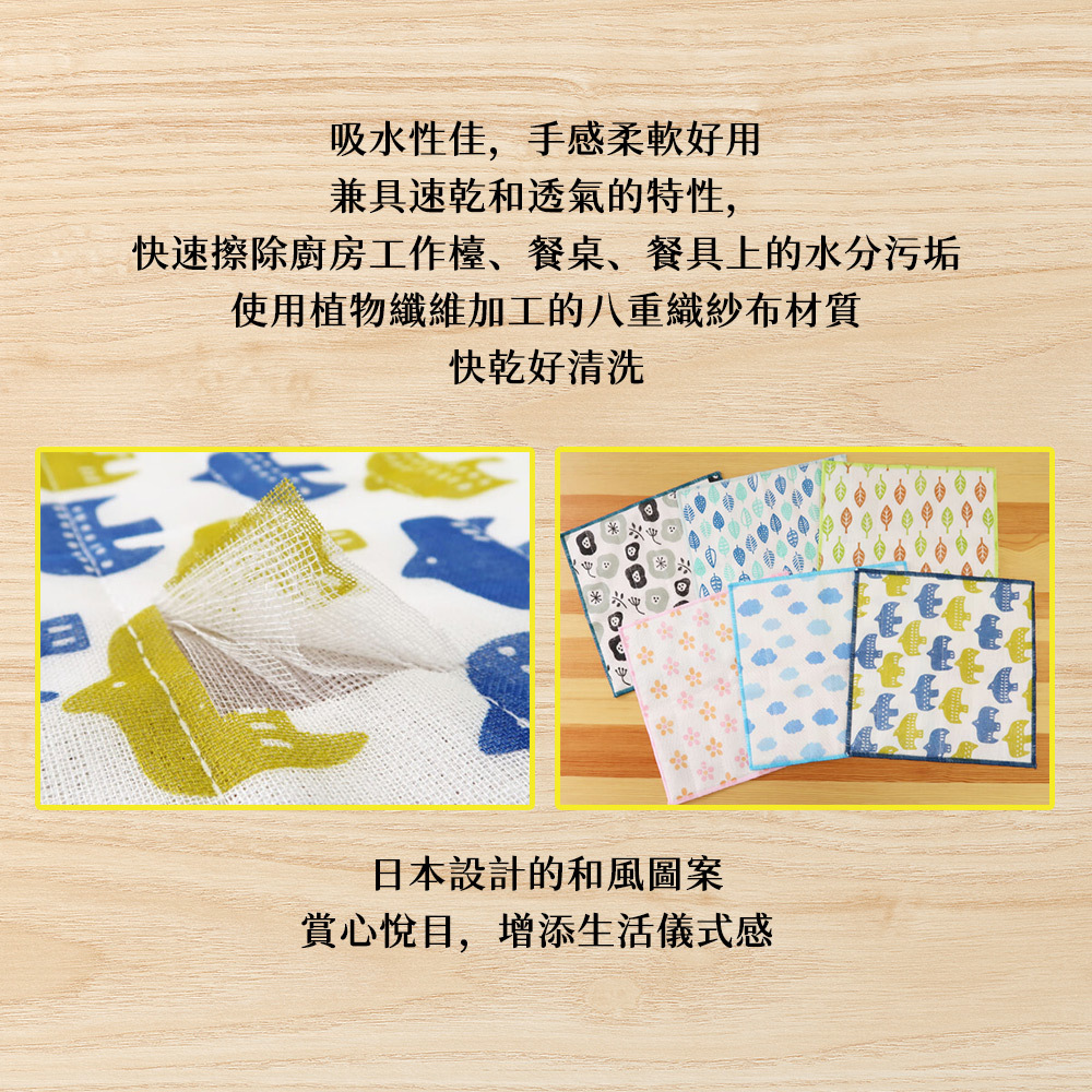 •使用植物纖維加工的八重織紗布材質,快乾好清洗