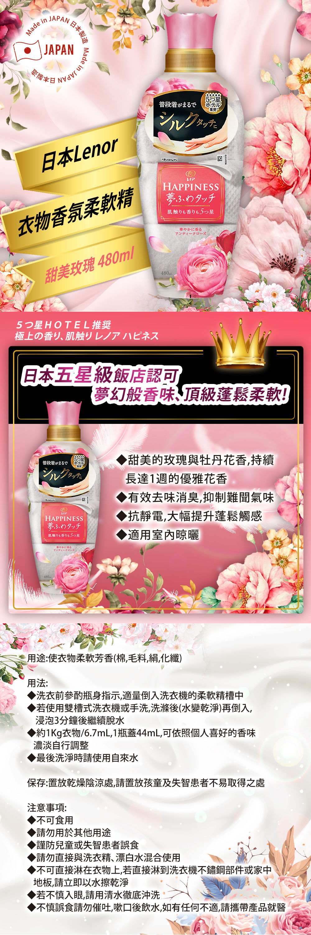 ◆甜美的玫瑰與牡丹花香,持續長達1週的優雅花香