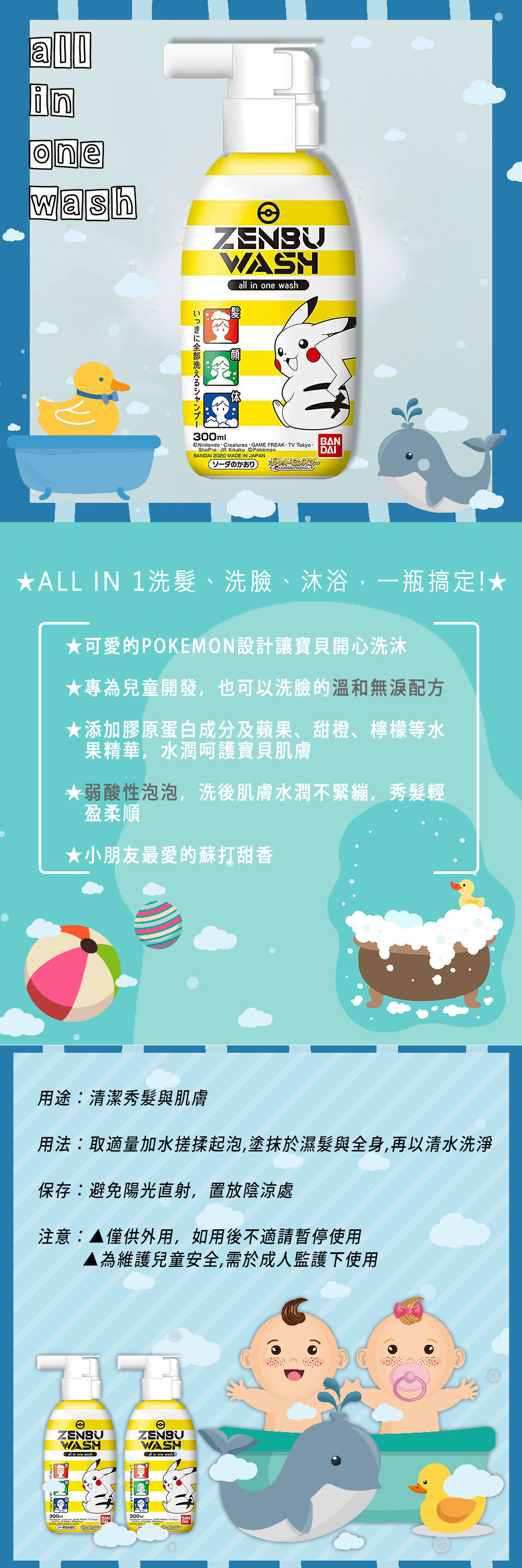 可愛的Pokemon設計讓貝開心洗適合兒童使用的溫和無淚配方