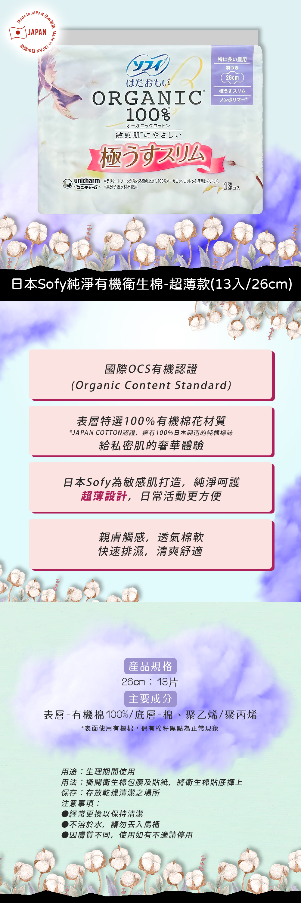◆日本Sofy 為敏感肌打造,來自有機棉的純淨呵護