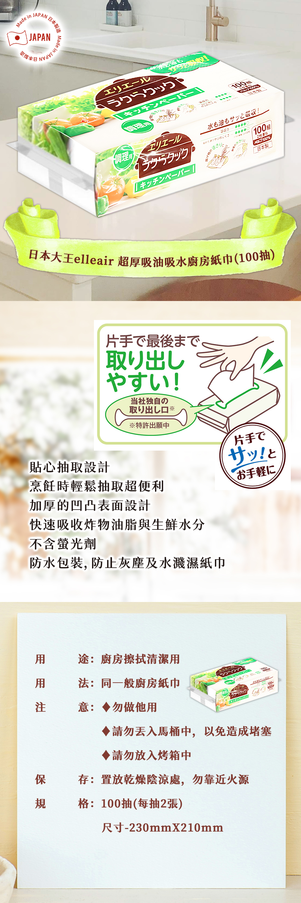 ♦防水包裝,防止灰塵及水濺濕紙巾