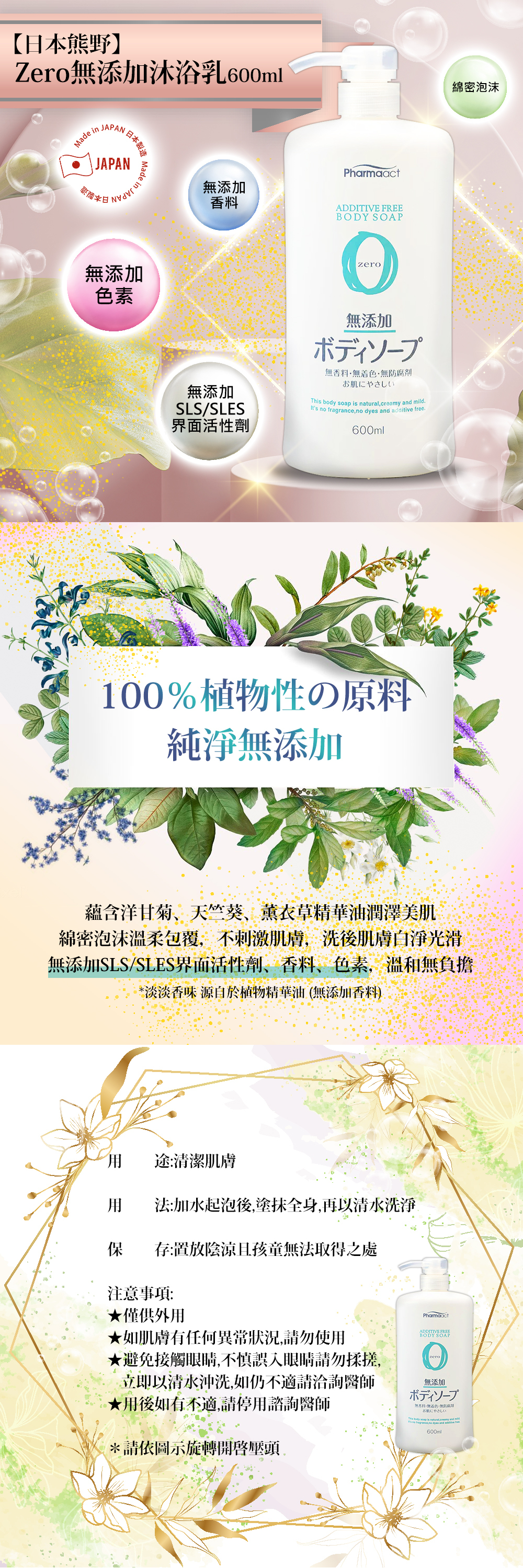 ◆無添加SLS/SLES界面活性劑、香料、色素,溫和洗無負擔