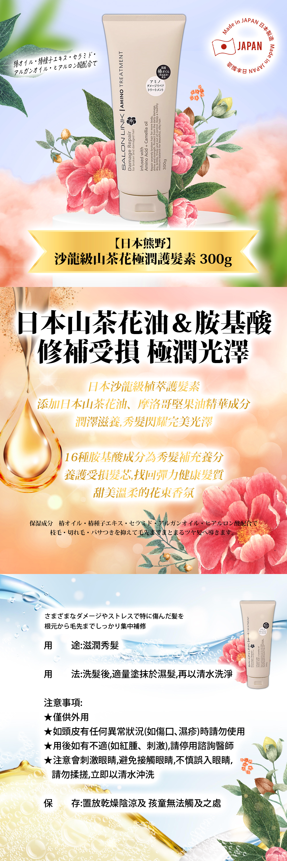 ※日本山茶花油&胺基酸 修補受損 極潤光澤※