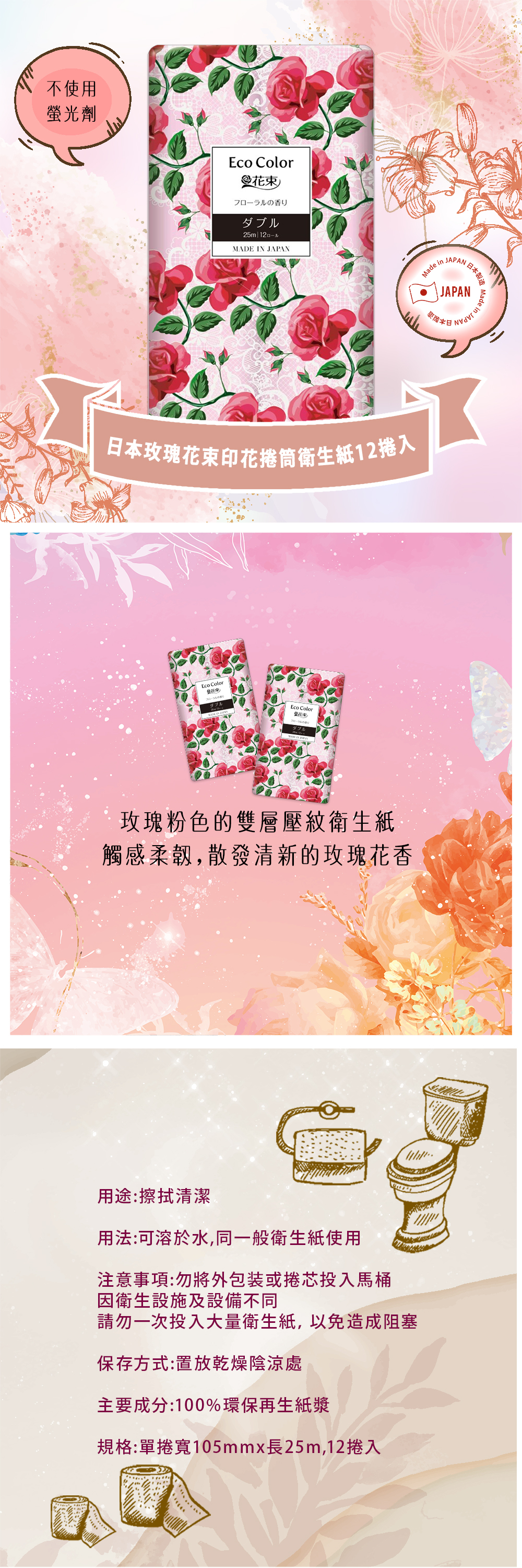 觸感柔韌,散發清新的玫瑰花香