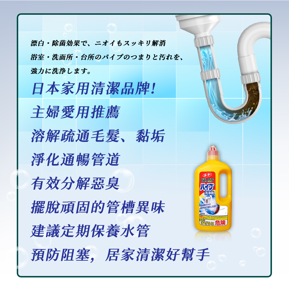 ‧溶解疏通毛髮、黏垢,淨化通暢管道